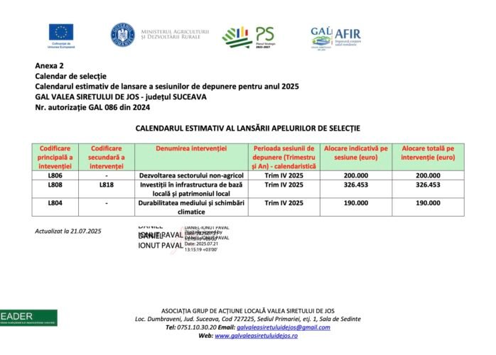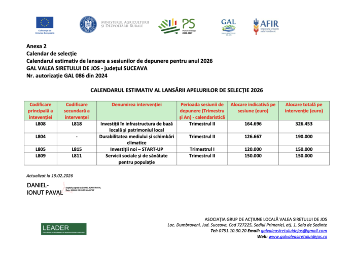 Vezi ultimele anunțuri GAL Valea Siretului de Jos