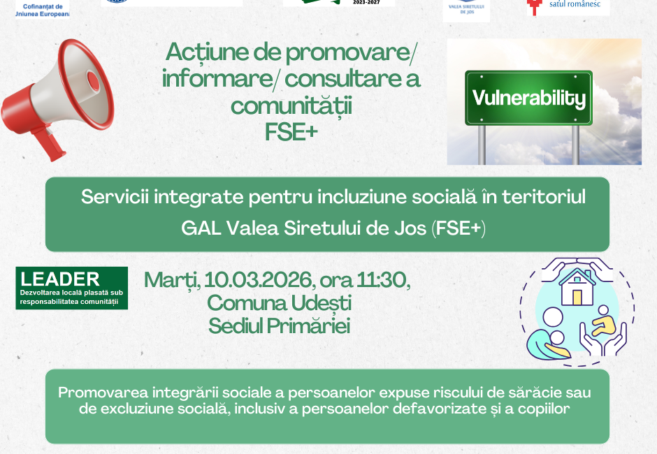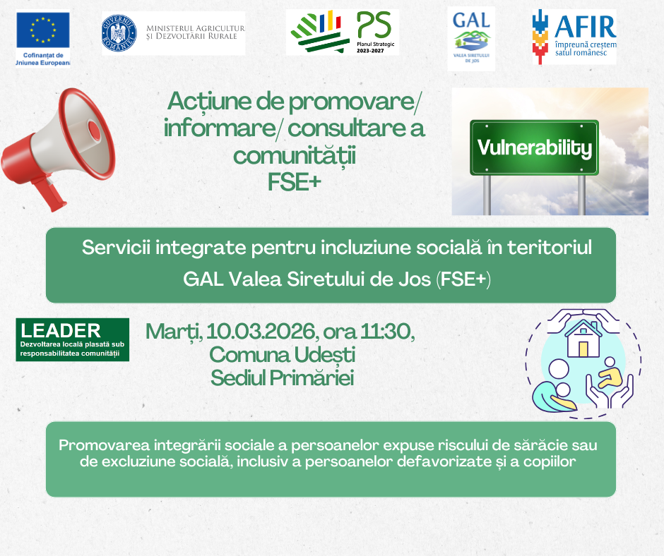 „Servicii integrate pentru incluziune socială în teritoriul GAL Valea Siretului de Jos (FSE+)”